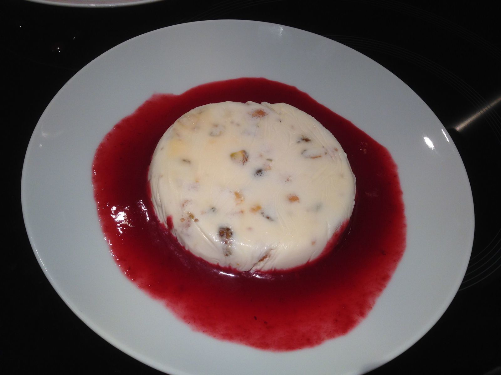 Dans des ramequins tapissés de film étirable (pour faciliter le démoulage) verser la préparation et laisser prendre plusieurs heures au congélateur.