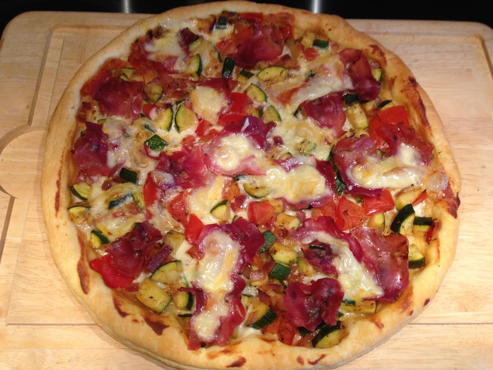 Voila une excellente tarte salée légère mêlant les saveurs de la coppa italienne au reblochon de Savoie sur un lit de petits légumes: le mariage est réussi......