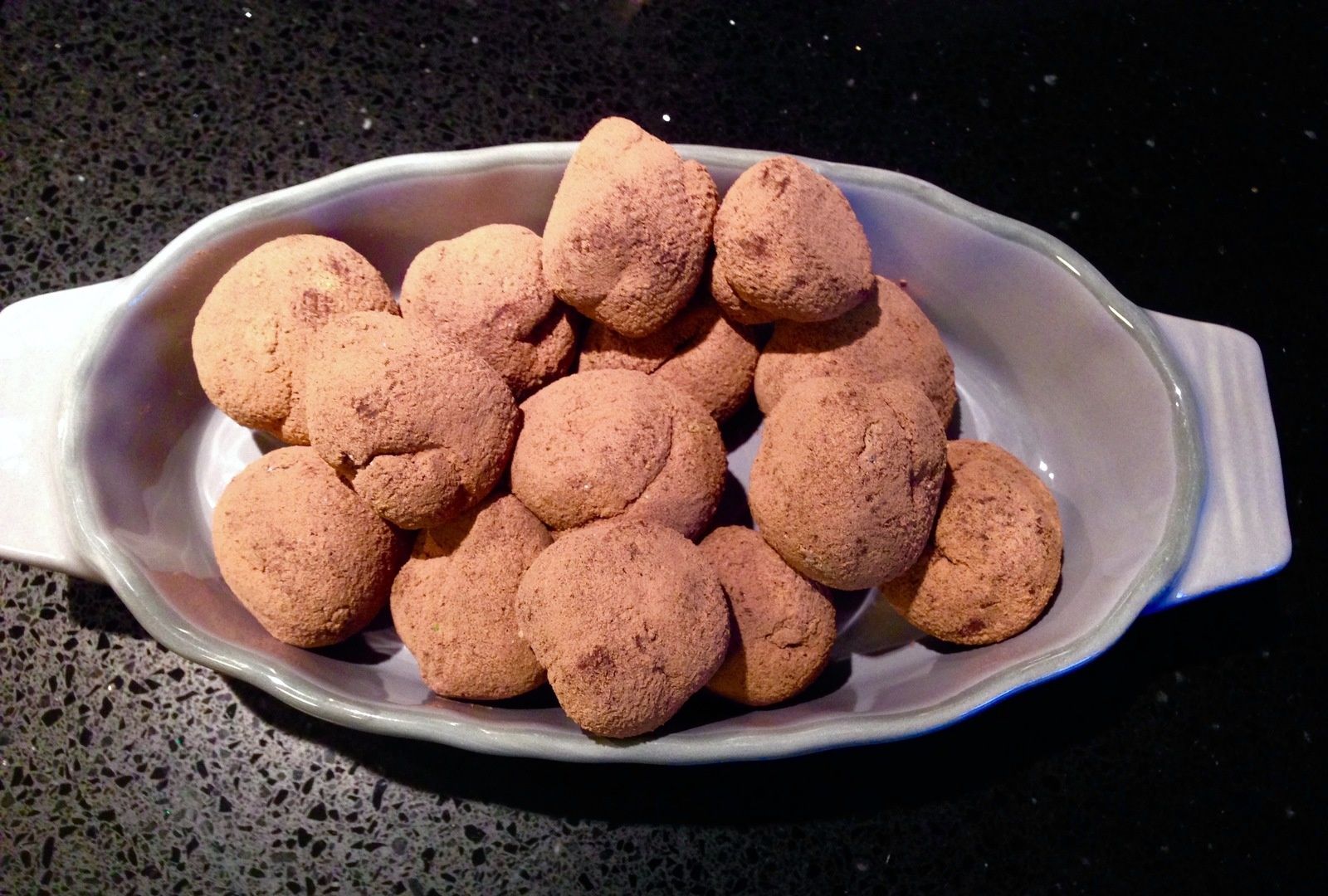 A l'aide d'une poche à douille, faire des petites boules de ganache sur une plaque recouverte de papier sulfurisé. Réserver au frais 2 heures.